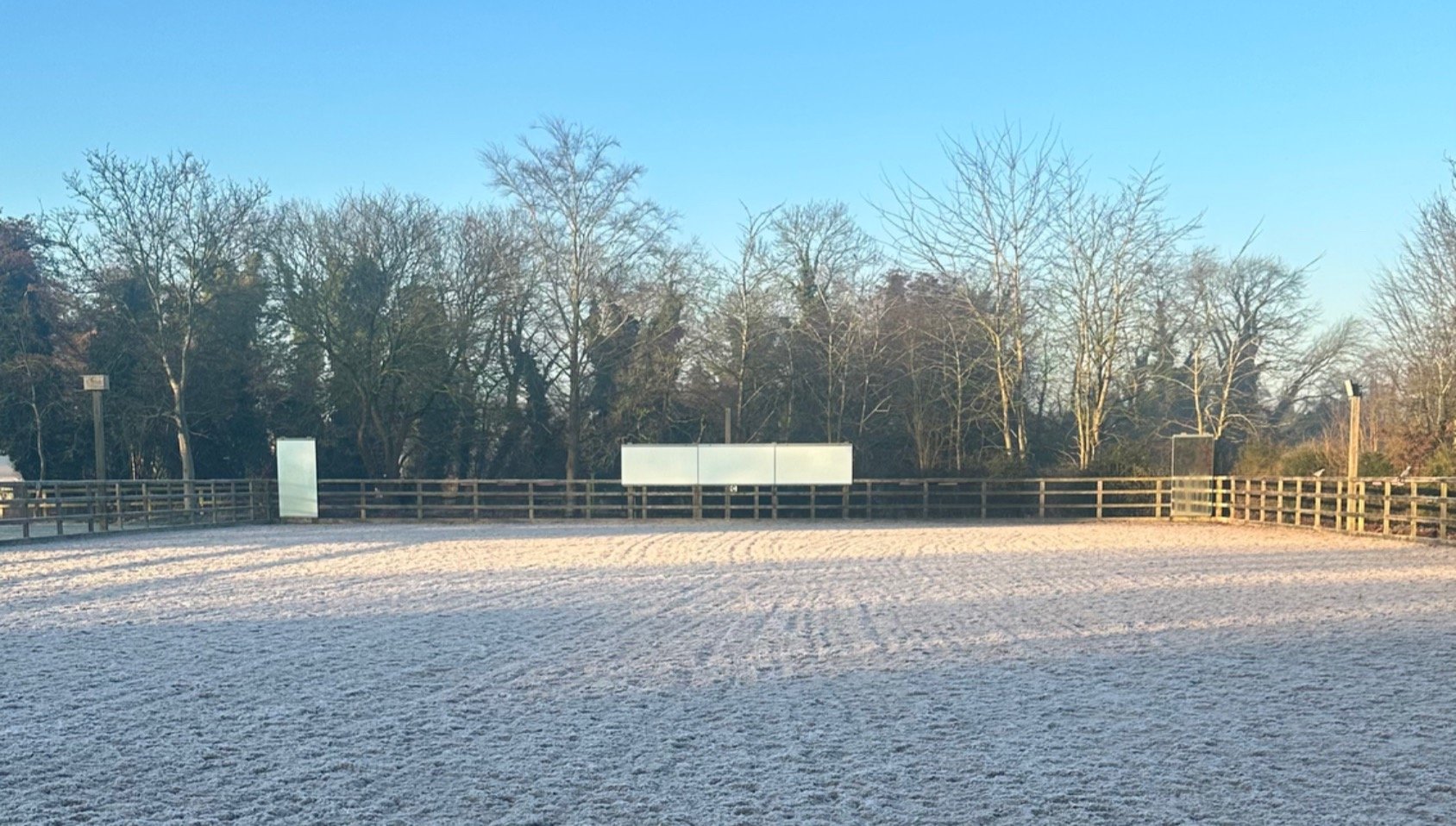Unlike the indoor arena, as there are no walls to impede our visibility, it would only be necessary to ask permission from those already using the space. Remember that even if you have full visibility of the space around you, it's good manners to let those in the arena know that you're either entering or leaving.